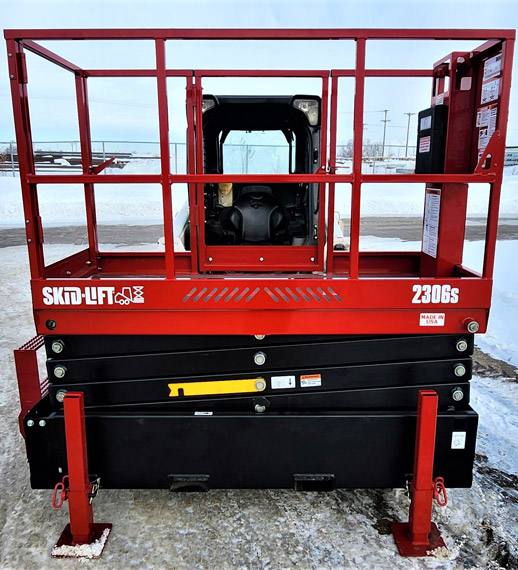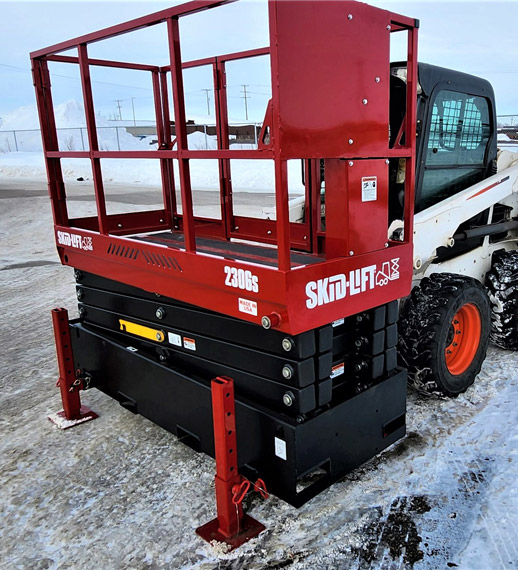 This bolt-on, end attach plate can be added to any Skid-Lift 1505S or 2306S at the time of the order or in the future. Having an additional plate can assist in getting the 1505s or 2306s into tight spaces or it can be used to position the basket so that basket length is parallel to a building giving more working room when in the basket for working on things like gutters. The end attach plate can also allow for less repositioning of the skid steer when moving down the length of a building.
